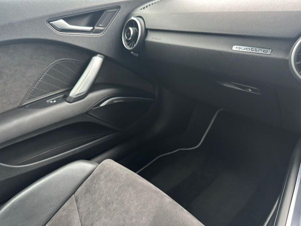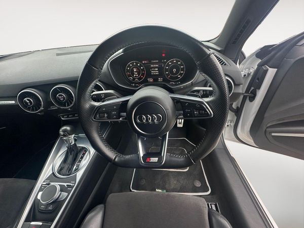 This 2017 Audi TT TFSI S line boasts exceptionally low mileage for its age, having covered just 41,500 miles. This particular example is presented in the desirable S line trim, featuring a responsive 2.0 litre petrol engine paired with a capable four wheel drive system. It meets Euro 6 emission standards, reflecting its modern engineering. Notable features include Bluetooth mobile telephone preparation for seamless connectivity, manual air conditioning to keep you comfortable, and a light and rain sensor that automatically adjusts headlights. The all weather LED headlights provide excellent visibility in various conditions.This Audi TT offers an impressive fuel economy of 43 miles per gallon, a highlight that demonstrates its efficiency compared to similar vehicles. Furthermore, its low CO2 emissions contribute to a more environmentally conscious driving experience. This combination of performance, efficiency, and advanced features makes this Audi TT TFSI S line a compelling choice for those seeking a stylish and capable sports car.