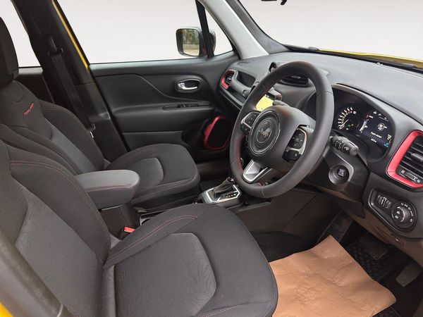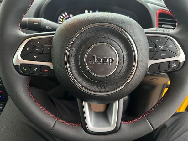 Finished in Bright Yellow Paint-This 2024 Jeep Renegade GSE T4 Trailhawk presents an exceptional opportunity with its remarkably low mileage of just 3307 miles, having been owned by only one careful keeper. This four wheel drive, Euro 6 compliant plug in hybrid petrol model boasts the Trailhawk trim, offering a compelling blend of capability and modern technology. It comes equipped with a rear tow hook including a towbar, perfect for those needing to transport trailers or caravans.Further enhancing its appeal are features designed for comfort and safety. The dual zone automatic air conditioning ensures a pleasant cabin environment for all occupants, while the blind spot detection with rear cross path monitoring provides an extra layer of awareness on the road. Automatic headlights activate at dusk and dawn, and steering wheel controls with Bluetooth connectivity allow for seamless integration of your devices. These highlights collectively demonstrate the superior specification and thoughtful design of this particular Renegade.