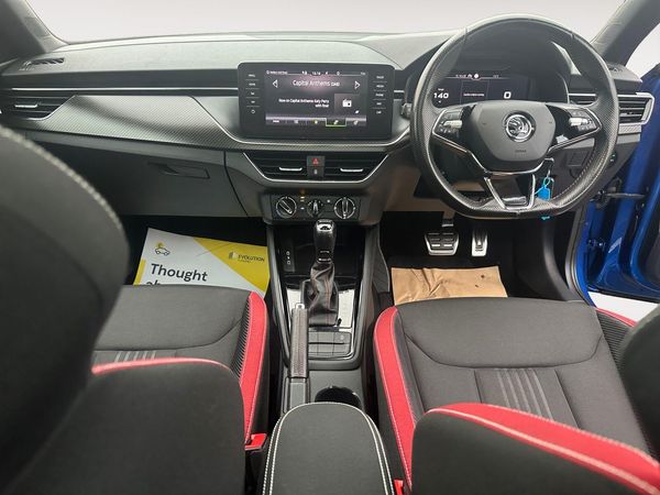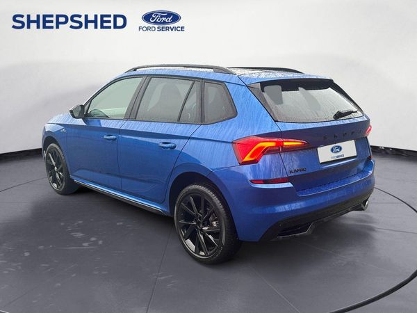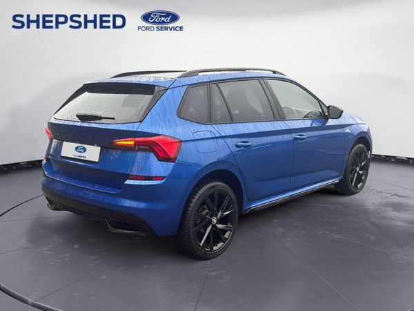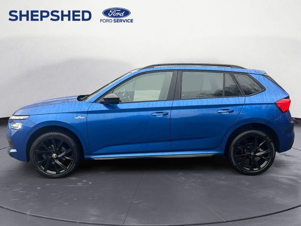 Finished in Metallic Blue Paint-This 2021 Skoda Kamiq TSI Monte Carlo is a superb example, having been owned by only one careful keeper since new. This stylish SUV boasts a 1.0 litre petrol engine, meeting Euro 6 emissions standards, and comes equipped with a host of desirable features. You'll appreciate the convenience of Full LED Headlights, Wireless Smartlink for seamless Apple CarPlay and Android Auto integration, and a striking Panoramic Sunroof complemented by sleek Black Roof Rails. For added ease, it also includes Bluetooth connectivity and Rear Parking Sensors.The Kamiq TSI Monte Carlo offers an impressive fuel economy of 47 miles per gallon, demonstrating its efficiency compared to similar vehicles. Furthermore, its low CO2 emissions highlight its environmentally conscious design. This combination of practical features, excellent fuel efficiency, and low emissions makes this Skoda Kamiq a compelling choice for those seeking a well maintained and feature rich compact SUV.