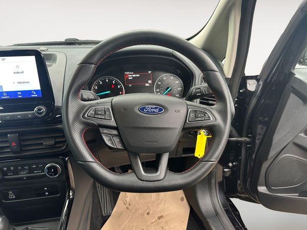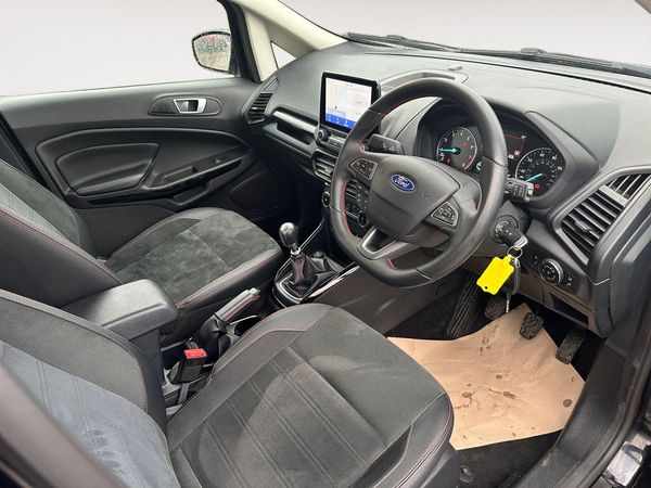 This 2022 Ford EcoSport ST Line presents an exceptional opportunity with its remarkably low mileage of just 11852 miles, having been owned by only one careful keeper. This stylish T ST Line variant is equipped with a responsive 1.0L petrol engine and meets Euro 6 emission standards. Inside, you'll find comfort and convenience with Electronic Automatic Temperature Control air conditioning and the Ford SYNC 3 system, featuring an 8 inch touchscreen that seamlessly integrates with Android Auto and Apple CarPlay. For added ease, it includes a rear view camera pack and rear parking sensors, complemented by LED low beam headlights for enhanced visibility.The fuel economy of this EcoSport is a notable highlight, achieving an impressive 46 miles per gallon, which indicates it is more economical than many similar vehicles on the road. Furthermore, its low CO2 emissions contribute to a more environmentally conscious driving experience. These factors, combined with its single owner status and minimal mileage, make this 2022 Ford EcoSport ST Line a compelling choice for those seeking a well maintained and efficient compact SUV.