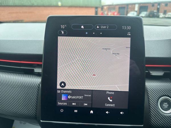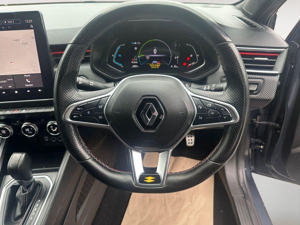 Finished in Metallic Grey Paint-This 2022 Renault Clio E-TECH RS Line is a superb example, having had only one owner since new. This stylish hatchback features a 1.6 litre petrol hybrid engine, meeting Euro 6 emission standards. Inside, you'll find a 9.3 inch EASY LINK touchscreen complete with navigation, Android Auto, and Apple CarPlay, plus Bluetooth connectivity. For convenience and safety, it includes a rear view camera with parking assistance, front parking sensors, and automatic climate control. The striking design is further enhanced by full LED front and rear headlamps that integrate daytime running lights.The Renault Clio E-TECH RS Line offers impressive efficiency, achieving a remarkable 66 miles per gallon, which is better than many similar vehicles. Its low CO2 emissions and low insurance group also contribute to lower running costs, making it an economical choice. This model accelerates from 0 to 62 miles per hour in just 9.3 seconds, demonstrating a good balance of performance and efficiency.