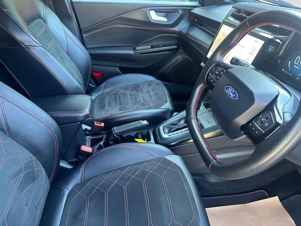 This 2024 Ford Puma T ST-Line X is a remarkable find, boasting exceptionally low mileage of just 7900 miles for its age and having had only one owner. This stylish compact SUV is powered by an efficient 1.0L Petrol Hybrid engine, meeting Euro 6 emission standards. It comes equipped with striking LED headlights featuring daytime running lights, ensuring excellent visibility. For convenience and safety, it includes a rear view camera paired with rear parking sensors, making manoeuvring effortless. Inside, you'll discover a generous 12in landscape touchscreen display that seamlessly integrates with your smartphone via wireless Apple CarPlay and Android Auto. This system also provides access to Ford SYNC Navigation, FordPass Connect, and an Emergency Assist feature, all enhanced by a premium B&O audio system with 10 speakers for an immersive sound experience.Further enhancing your driving pleasure, the Ford Puma T ST-Line X features Electronic Automatic Temperature Control (EATC) for perfect cabin climate, and the Ford Keyfree System allows for keyless entry and starting with the Ford Power Starter Button. These features collectively demonstrate a superior level of comfort, technology, and user experience compared to other vehicles in its class. The combination of its advanced technology, hybrid efficiency, and the pristine condition offered by its single ownership and minimal mileage makes this Ford Puma a truly desirable option.